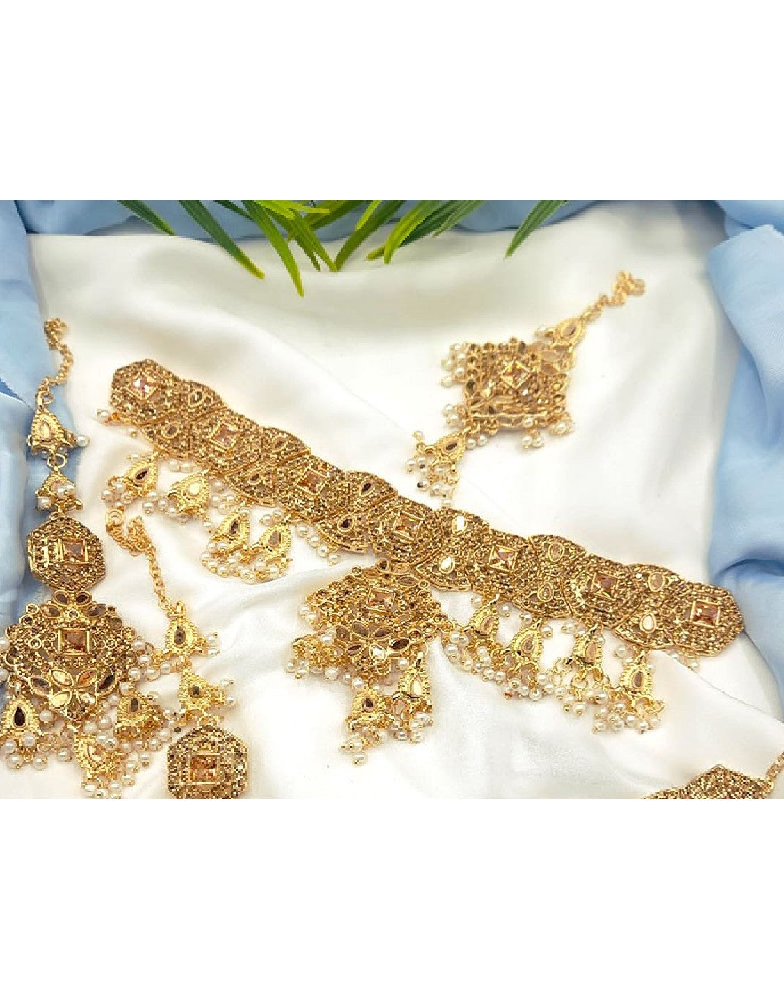 Looking to buy Stylish Bridal Choker Necklace Set with Earrings, Jhoomar & Tikka online in Pakistan? Discover modern designs, reliable quality, and the best price available. Shop now and enjoy fast delivery and secure checkout.