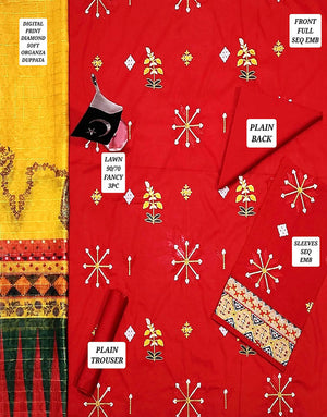 Trendy Embroidered Lawn Dress with Organza Dupatta