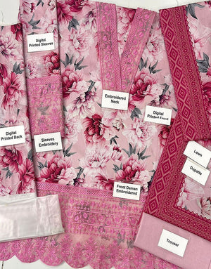 Digital Print Embroidered Lawn Dress with Lawn Dupatta