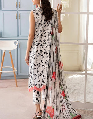 Elegant Embroidered Lawn Dress with Digital Print Silk Dupatta