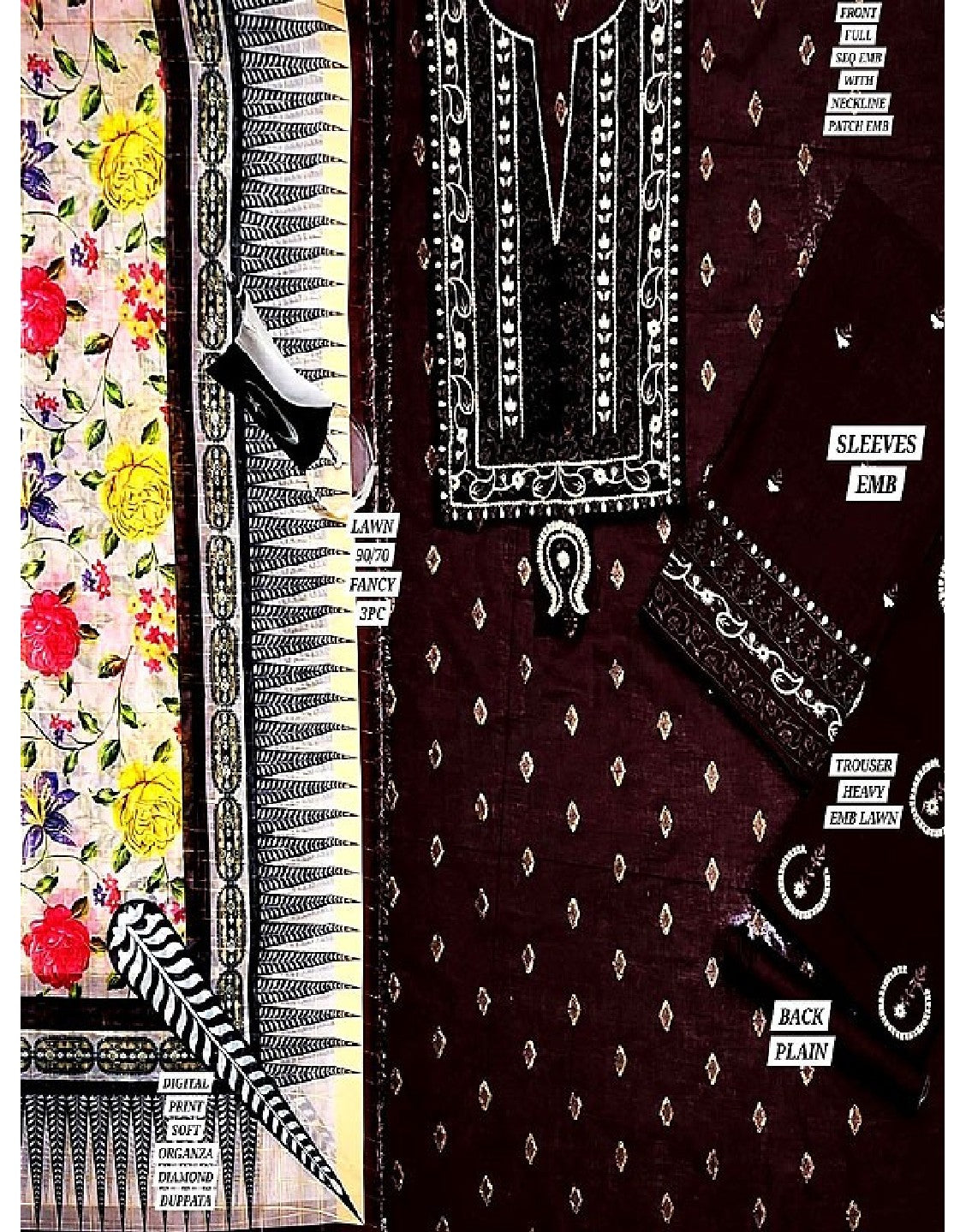 Elegant Sequins Embroidered Lawn Dress with Diamond Organza Dupatta