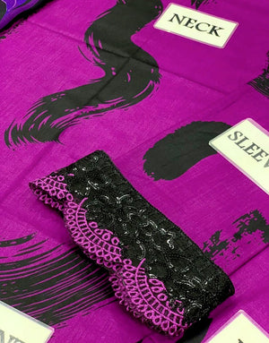 - Printed Lawn Sleeves with Border Embroidered Patches