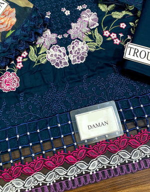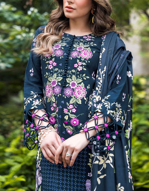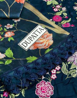 Luxury Heavy Embroidered EID Lawn Suit with Digital Silk Dupatta