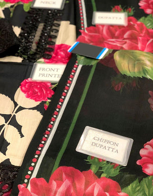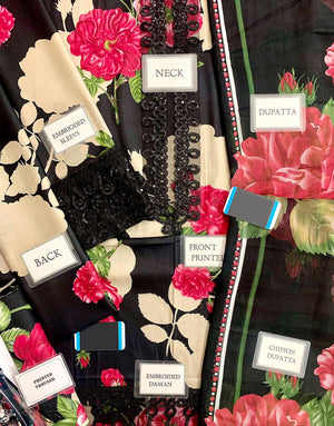 All-Over Flower Print Embroidered Lawn Dress with Chiffon Dupatta
