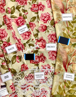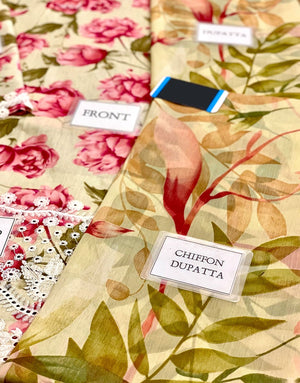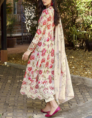 All-Over Floral Print Embroidered EID Lawn Dress with Soft Chiffon Dupatta