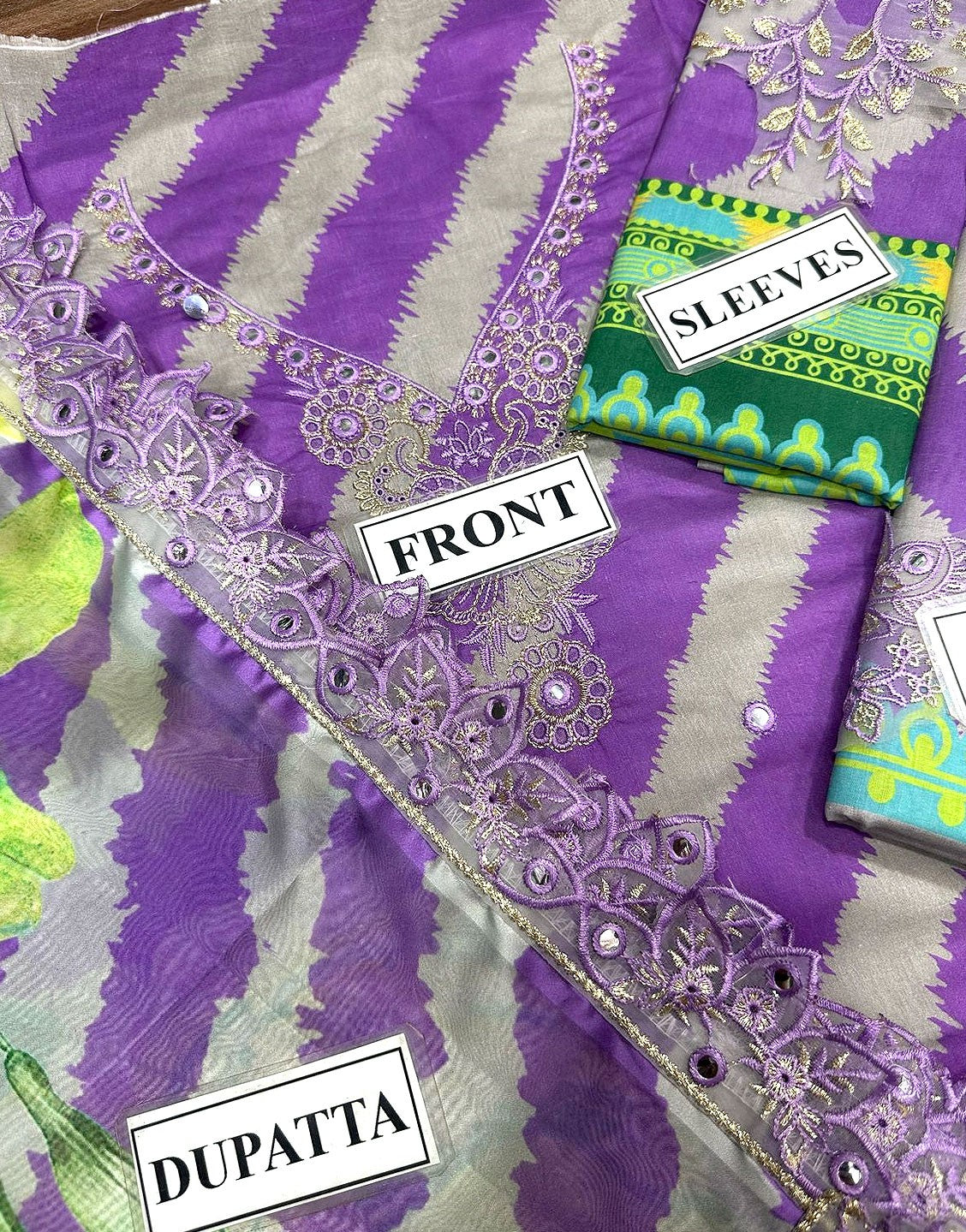 - Printed Lawn Sleeves with Embroidered Patches