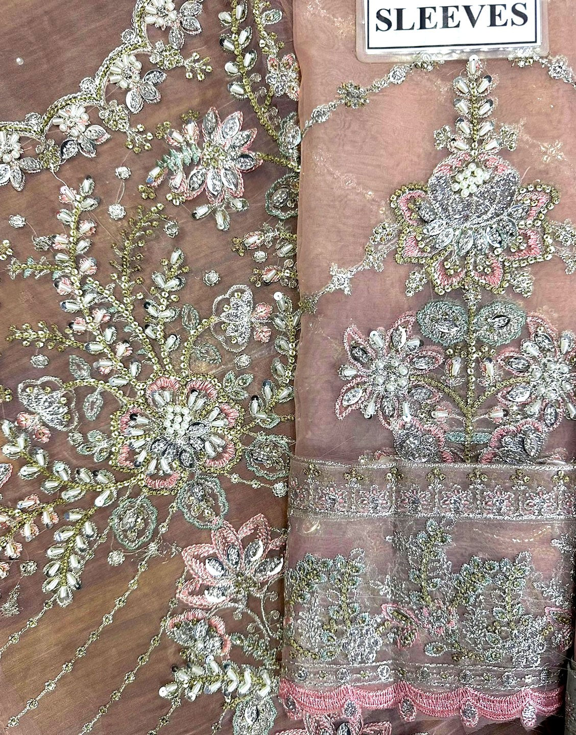 - Handwork Heavy Embroidered Organza Sleeves