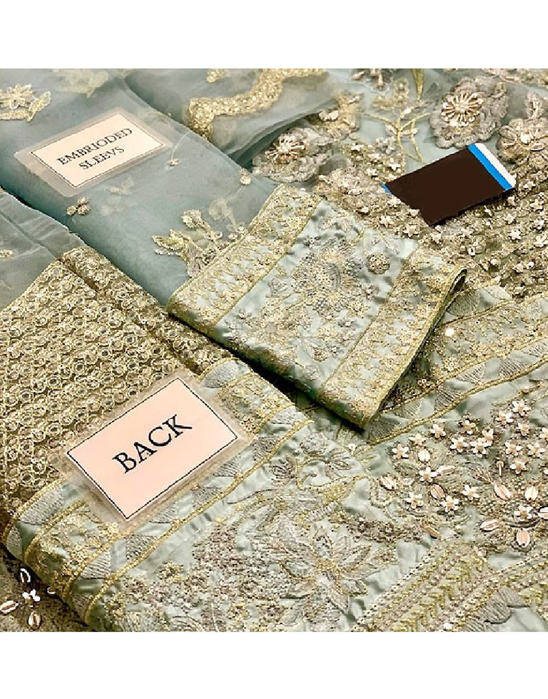 - Handwork Heavy Embroidered Organza Front Neck & Body