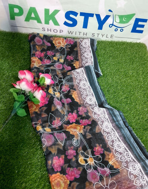 - Printed with Scroll Embroidered Swiss Lawn Sleeves
