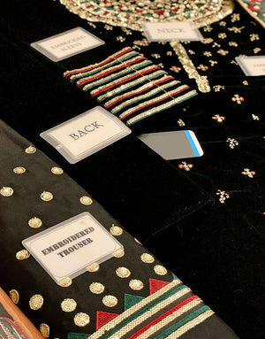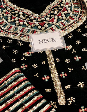 Fancy Embroidered Black Velvet Dress with Emb. Silk Trouser