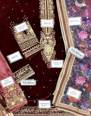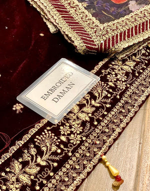 Looking to buy Premium Heavy Embroidered Burgundy Velvet Wedding Dress with Embroidered Silk Trouser online in Pakistan? Discover modern designs, reliable quality, and the best price available. Shop now and enjoy fast delivery and secure checkout.