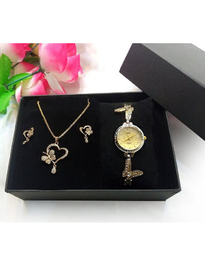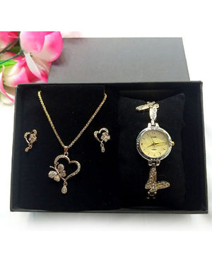 Elegant Butterfly Shape Jewellery & Watch Gift Set with Gift Box