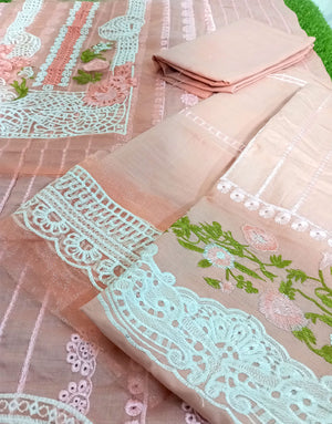 - Schiffli Embroidered Lawn Sleeves with Heavy Embroidered Border