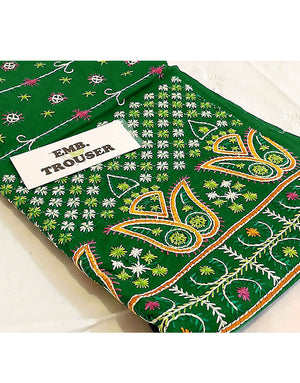 Trendy 2-Piece Embroidered Cotton Lawn Dress with Green Phulkari Embroidered Trouser