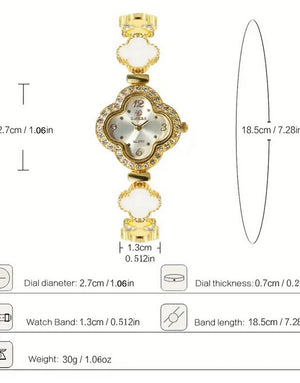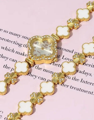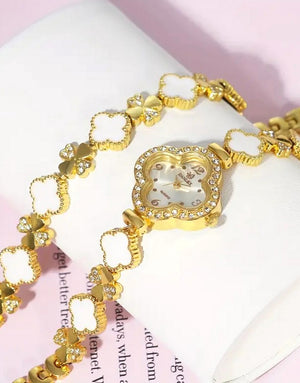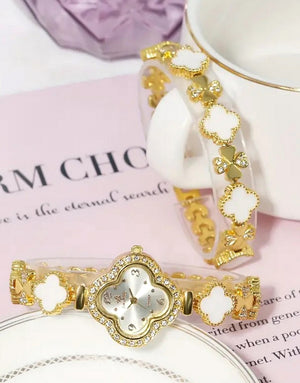 2-Pcs Boho Style Four Leaf Clover Design Ladies Watch & Bracelet Set