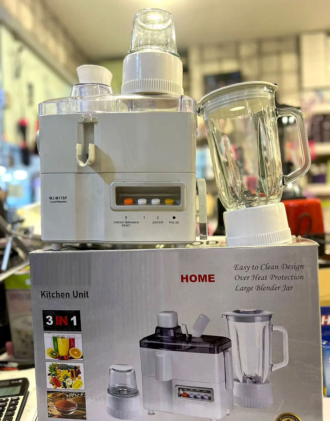 In today's busy lifestyle, preparing fresh juices, smoothies, or grinding spices often feels like a challenge. The 3 in 1 Juicer, Blender & Grinder Machine is designed to solve this problem by bringing convenience, speed, and versatility into your kitchen. With its powerful motor and durable build, this kitchen appliance effortlessly juices fruits, blends creamy shakes, and grinds spices with precision, all in one compact design.