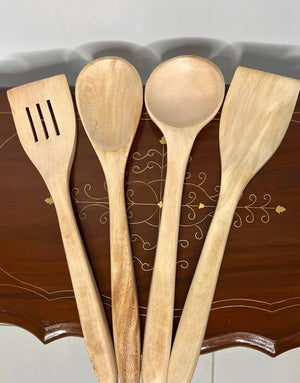 4 Pcs Wooden Cooking Spatulas & Spoons Set for Kitchen Cooking