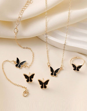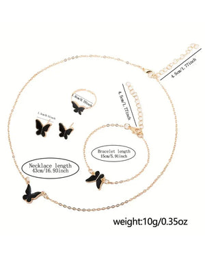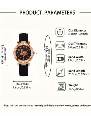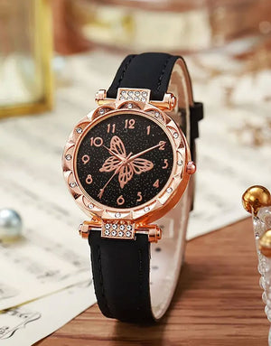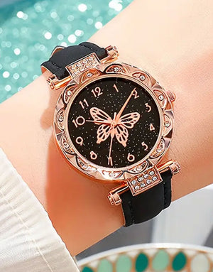 6-Pcs Women's Fashionable Quartz Watch & Butterfly Shaped Jewellery Set