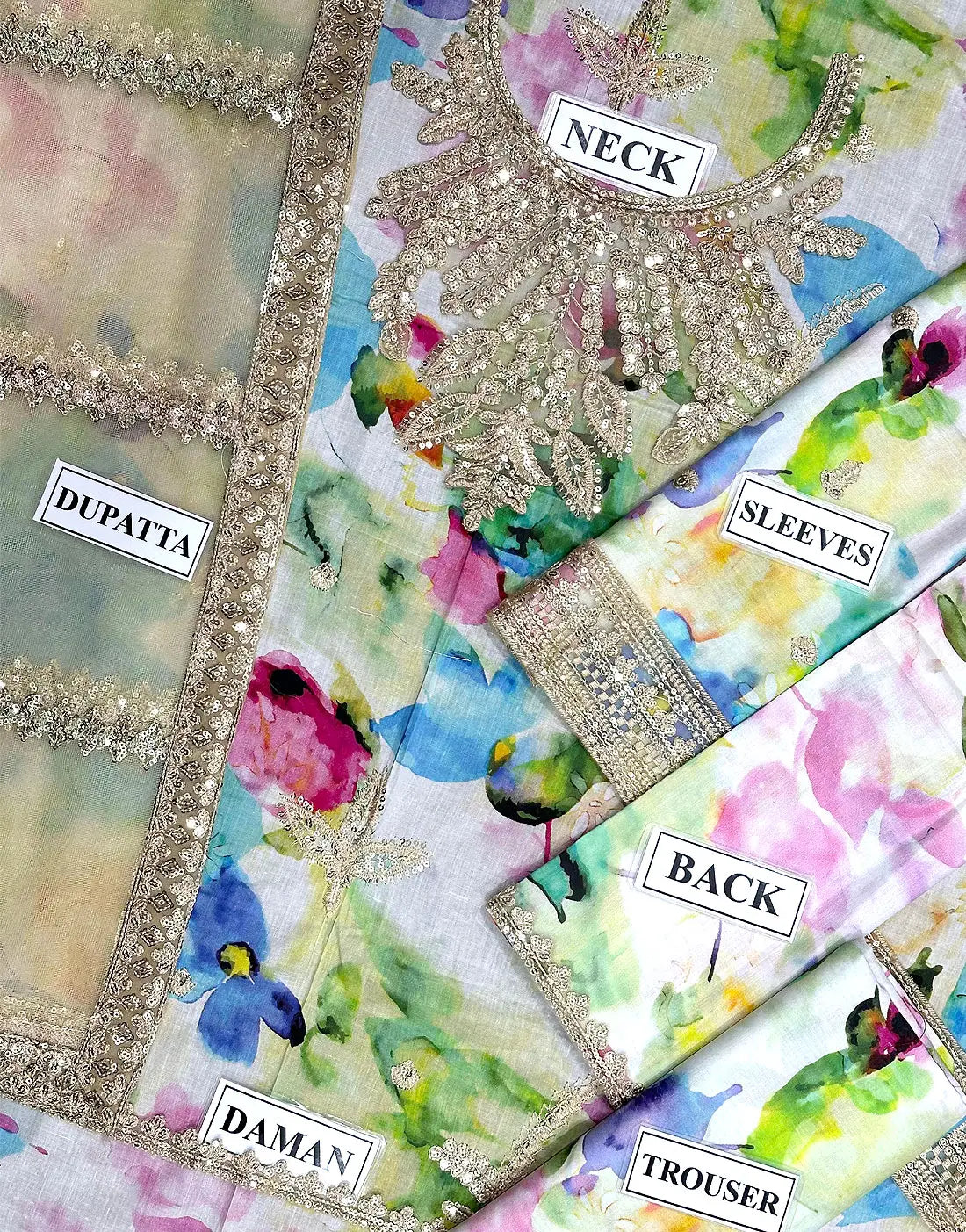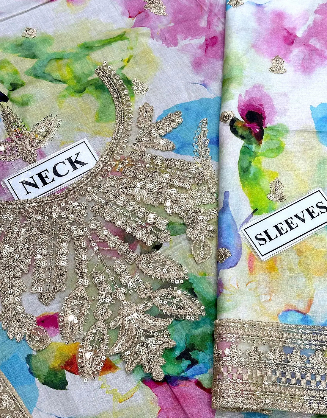 - Sleeves: Embroidered Lawn Sleeves with Border Patches