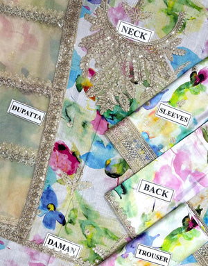 All-Over Print Embroidered EID Lawn Dress Design with Emb NET Dupatta