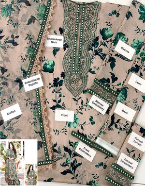 Aneela's All-Over Floral Print Embroidered Lawn Dress with 4-Side Emb. Chiffon Dupatta
