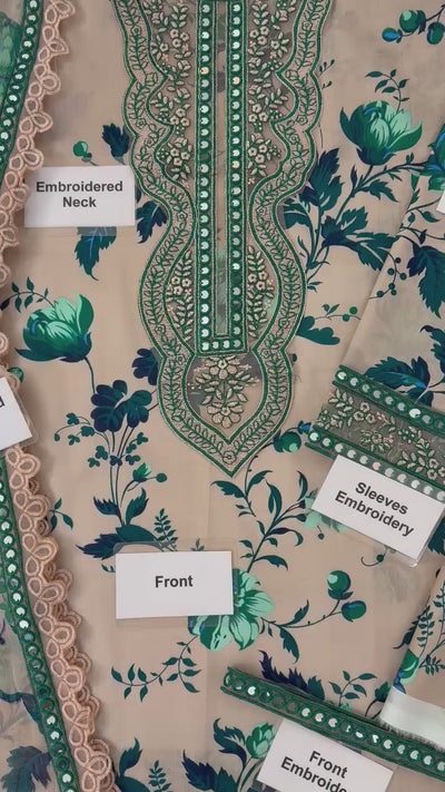 - Dupatta: 4-Side Embroidered Border Printed Chiffon Dupatta
