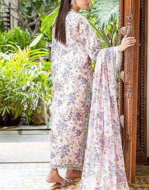 All-Over Floral Print Embroidered EID Lawn Suit with 4-Side Emb. Chiffon Dupatta