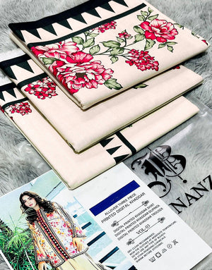 IB Angan All-Over Digital Print 3-Piece Khaddar Dress