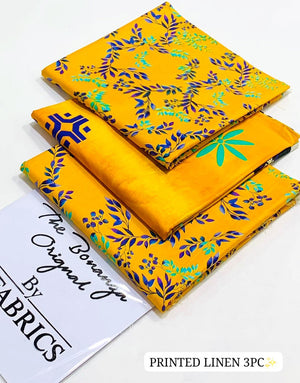 IB Bonanza All-Over Digital Print 3-Piece Linen Suit  with Linen Dupatta
