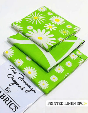 IB Bonanza All-Over Digital Print 3-Piece Linen Dress with Linen Dupatta