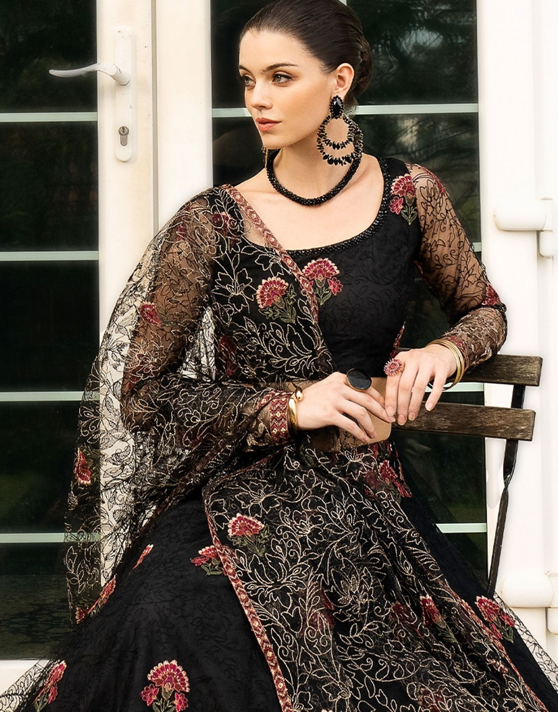 Bareeze Black Net Wedding Lehenga Dress | GOLD ORNAMENT CH4508 - Out of Stock