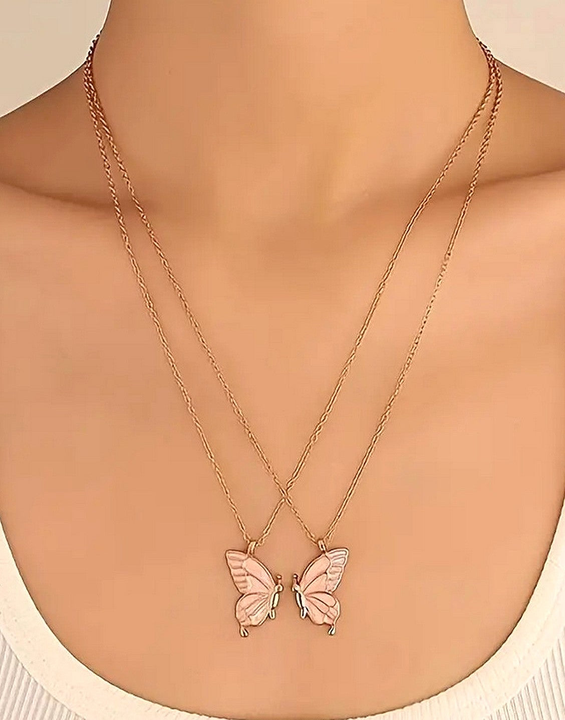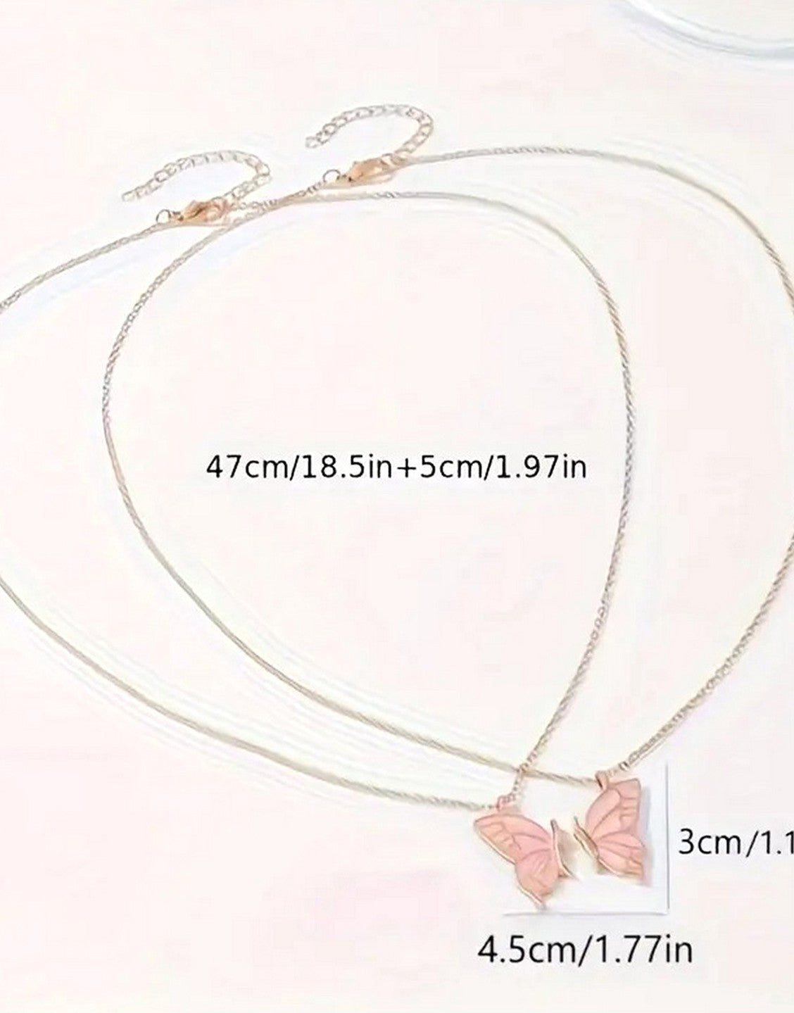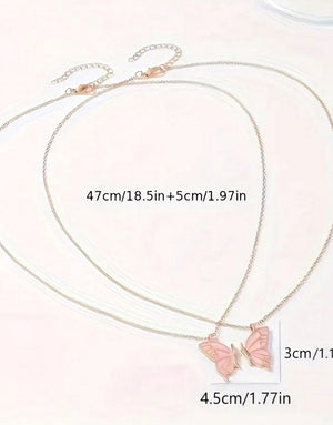 Pack of 2 Adjustable Butterfly Shape Pendant Necklace for Girls