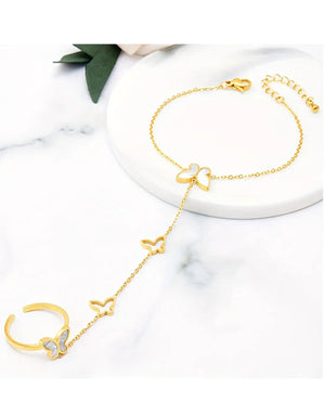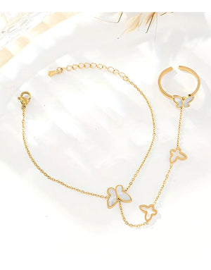 Gold Plated Stainless Steel Anja Bracelet Ring Set with Butterfly Charm