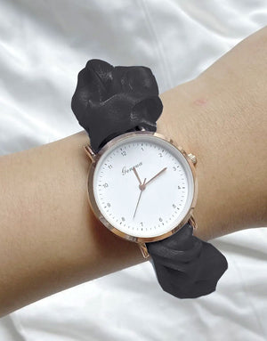 Cute Satin Hair Ring Black Strap Casual Watch for Girls