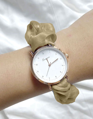 Cute Satin Hair Ring Green Strap Casual Watch for Girls