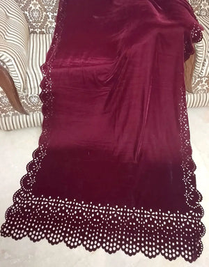 Intricate Laser Cutwork Women's Velvet Shawl for Weddings & Parties