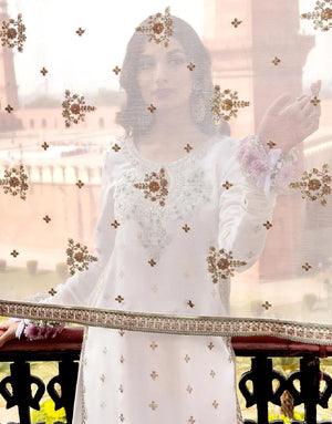 Make your Nikkah or engagement look truly unforgettable with this Graceful Embroidered White Chiffon Dress. If you are searching for an outfit that blends elegance with tradition, this stunning white dress is the perfect choice. Crafted from premium chiffon, it features delicate embroidery with fine thread and sequins that add a soft, luxurious touch. The pure white hue symbolizes grace and purity, making it ideal for bridal moments and formal gatherings. Designed for Pakistani women who value style and comfort, it comes with a matching trouser for a complete look. Whether you are the bride or a close guest, this ensemble ensures you shine with sophistication. Order now from PakStyle.pk and enjoy fast delivery across Pakistan.