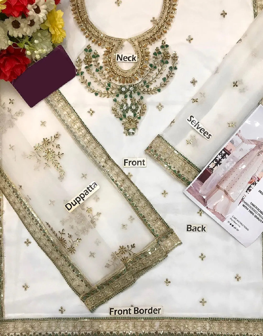 - Dupatta: 4 Side Border Embroidered NET Dupatta