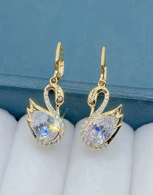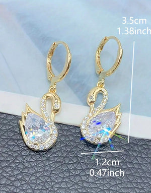 Sparkling Rhinestones Swan Shape Dangle Earrings for Girls