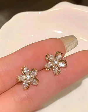 Elegant Rose Gold Cubic Zirconia Flower Quirky Earrings