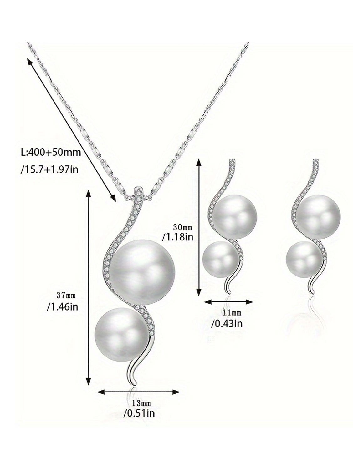 Elegant Faux Pearl Pendant Necklace & Earrings Set for Girls