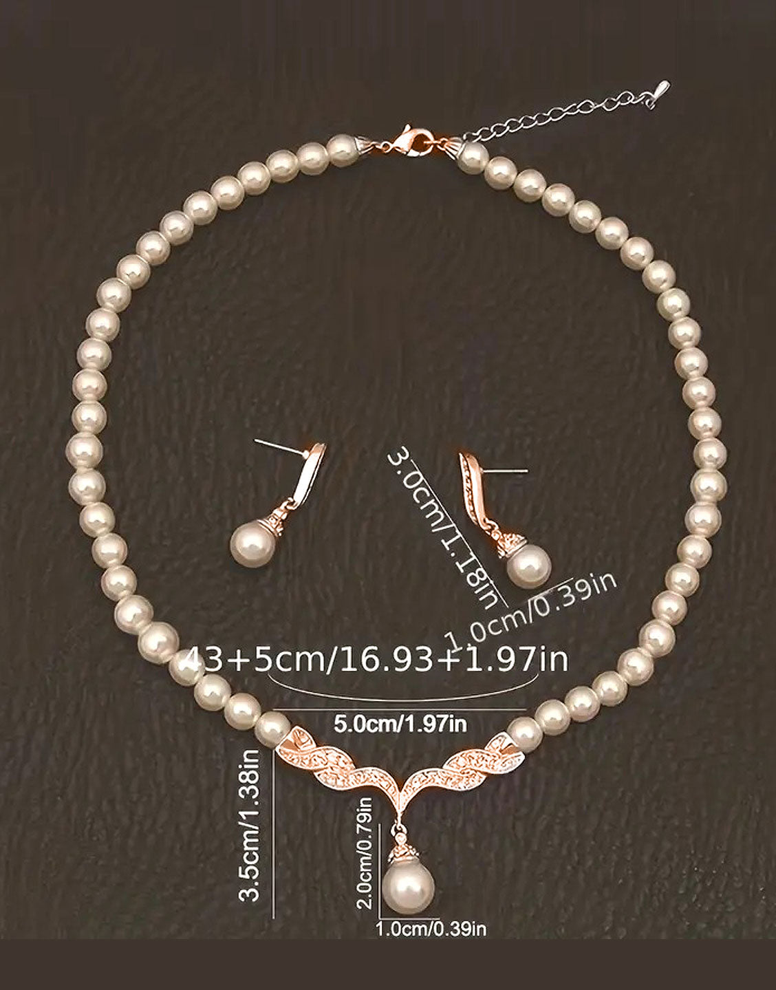 High Quality Rose Gold Pearl Necklace Set with Earrings