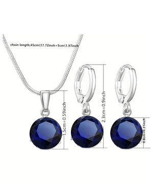 Adorable Crystal Blue Zirconia Necklace & Earrings Set with Rhinestone Accents