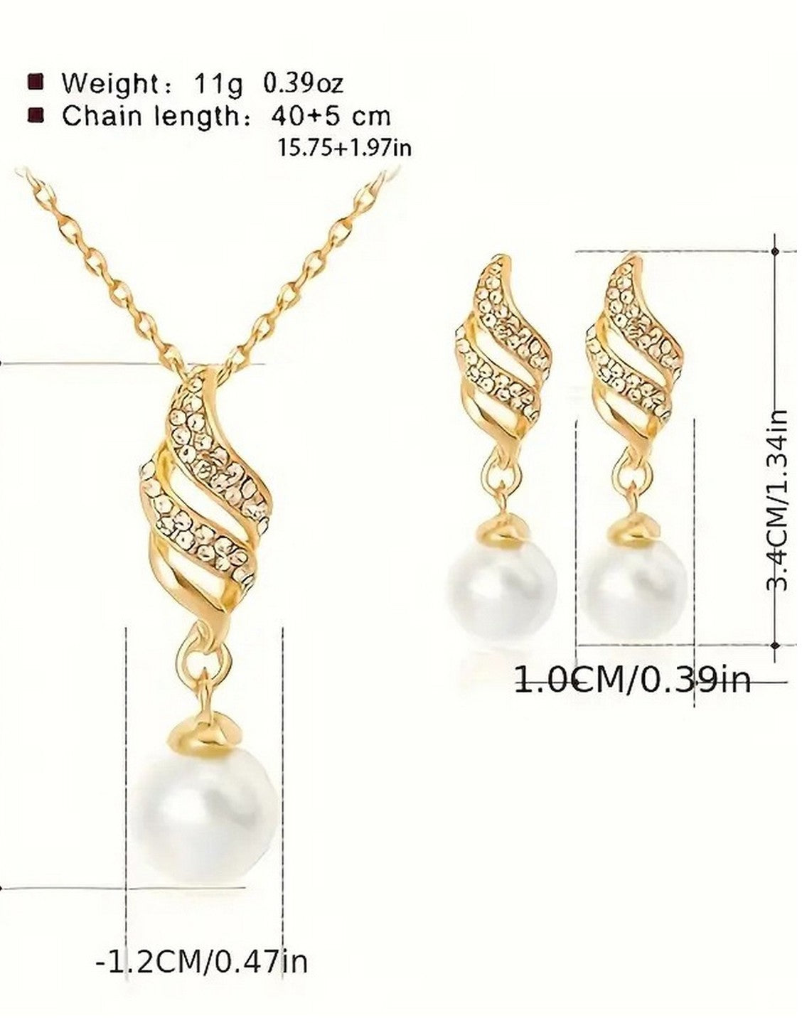 Elegant Spiral Pearl Golden Jewellery Set with Necklace and Earrings