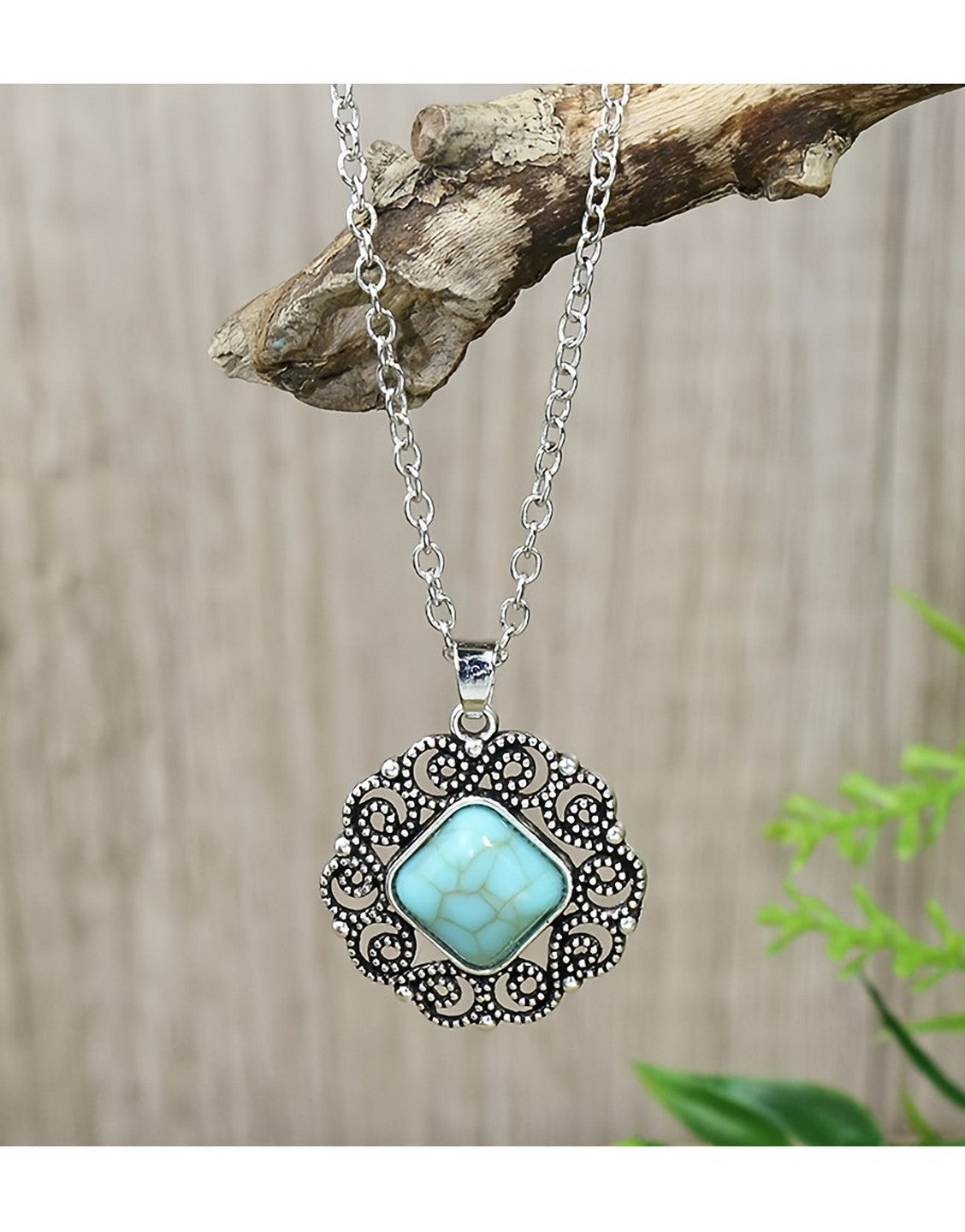 Looking to buy Vintage Silvery Rectangular Turquoise Necklace with Earrings Set online in Pakistan? Discover modern designs, reliable quality, and the best price available. Shop now and enjoy fast delivery and secure checkout.