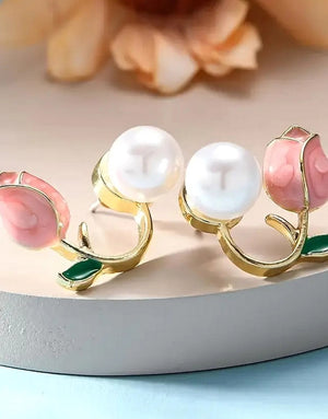 Versatile Tulip Shape Imitation Pearl Necklace & Earrings Set