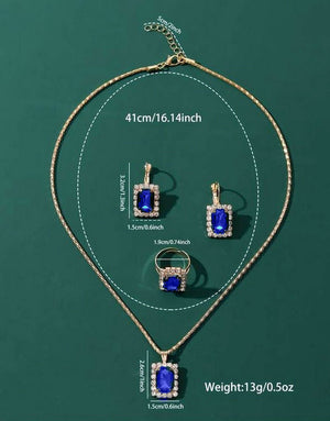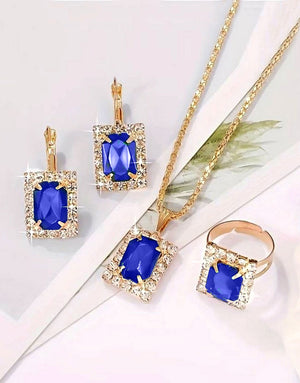 3-Piece Square Shape Synthetic Blue Gemstone Jewellery Set with Earrings, Necklace and Ring