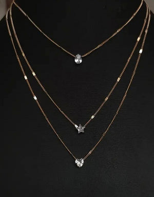 Multi-Layer Star, Heart & Teardrop Charms Rhinestone Necklace