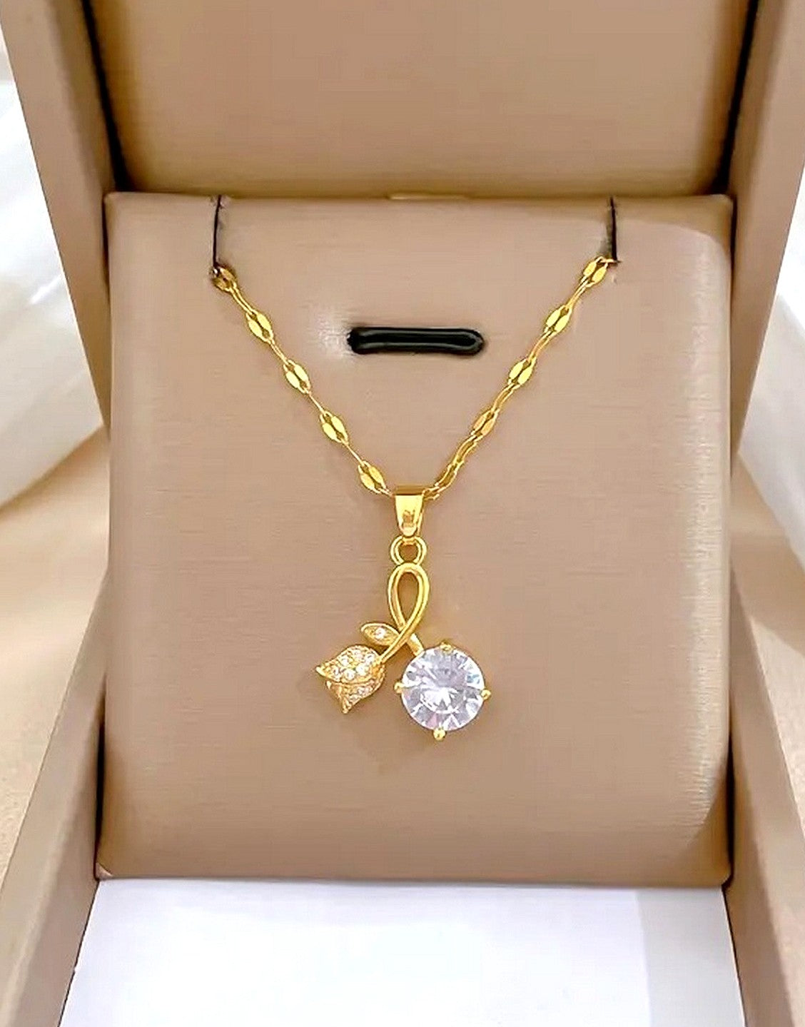 Romantic Rose and Cherry Blossom Shape Titanium Steel Pendant Necklace