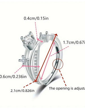 Adjustable Synthetic Cubic Zirconia Silver Starry Sky Ring for Women